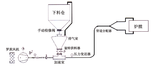 旋轉供料器連續(xù)輸送系統(tǒng)是利用氣壓差原理與噴射流技術、流態(tài)化技術相結合,吸收現代氣力輸送兩相流的理論,針對粉體氣力輸送中、近距離要求連續(xù)輸送的特點而開發(fā)的專用輸送系統(tǒng)。